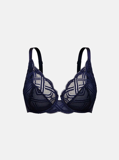Ce soutien gorge SANS COMPLEXE construit en 2 tranches se compose d’une dentelle graphique textronic et d’une microfibre en polyamide recyclée doublée de tulle pour un maintien optimal.